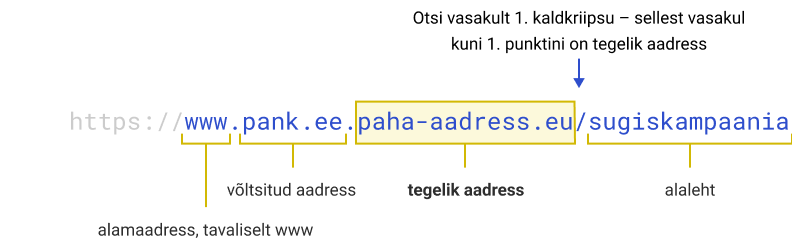 - Aadressile järgneb teinekord ka viide mõnele konkreetsele lehele, nt sügiskampaania leht “https://www.pank.ee/sugiskampaania”. Sellisel juhul on tegu panga enda lehega, sest esimene / (välja arvatud “https://” osa) viitab “pank.ee” lehele.