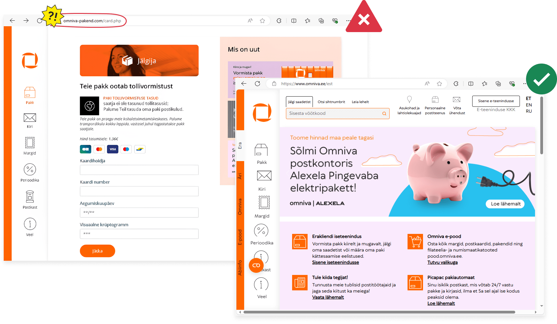 - Aadressi ”omniva.ee.popsi7.com/index.php” puhul saab nii teada, et tegemist polegi Omnivaga, vaid hoopis lehega “popsi7.com”.