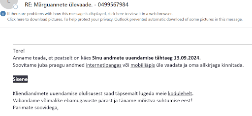Ohver vajutab e-kirjas või SMS-is olevale veebilingile ja satub panka matkivale õngitsuslehele.